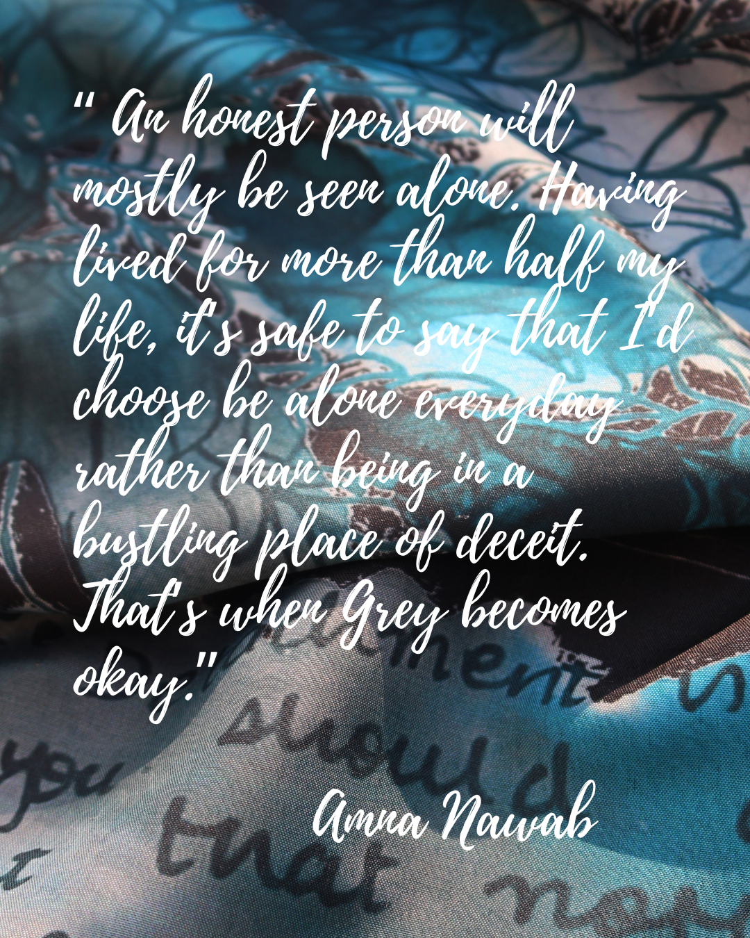 An honest person will mostly be seen alone. Having lived for more than half my life, it’s safe to say that I’d choose be alone everyday rather than being in a bustling place of deceit. That’s when Grey becomes okay.