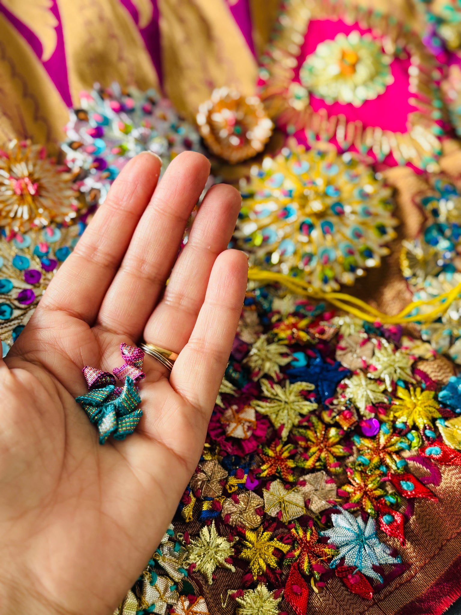 Hand embroidered and gota embellished bespoke dupattas by Amna Nawab (that’s me). The finished borders and gota edging are hand hemmed.